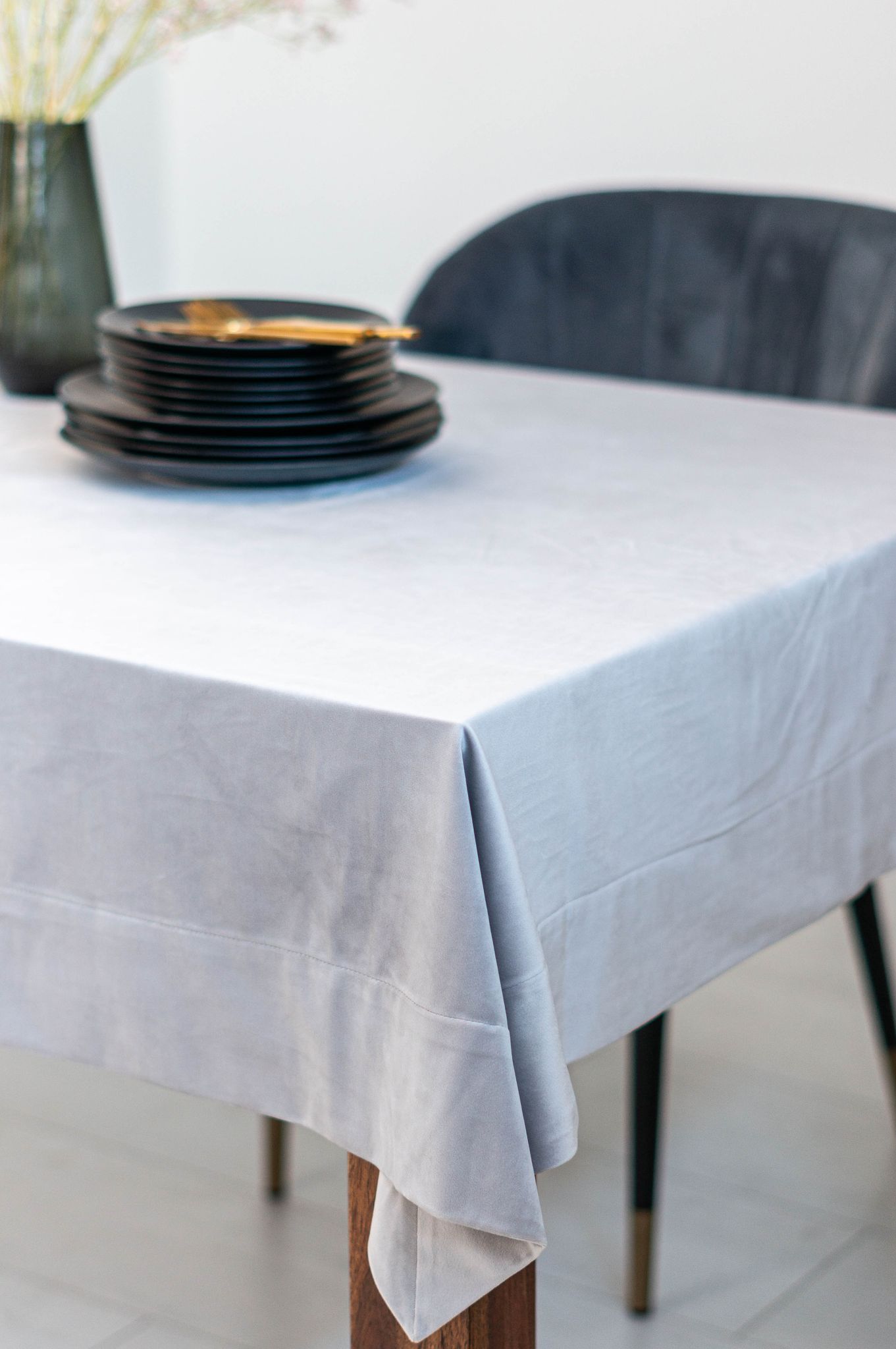 Elegancki obrus wykonany z miękkiego welwetu nada wyjątkowy charakter we wnętrzu.